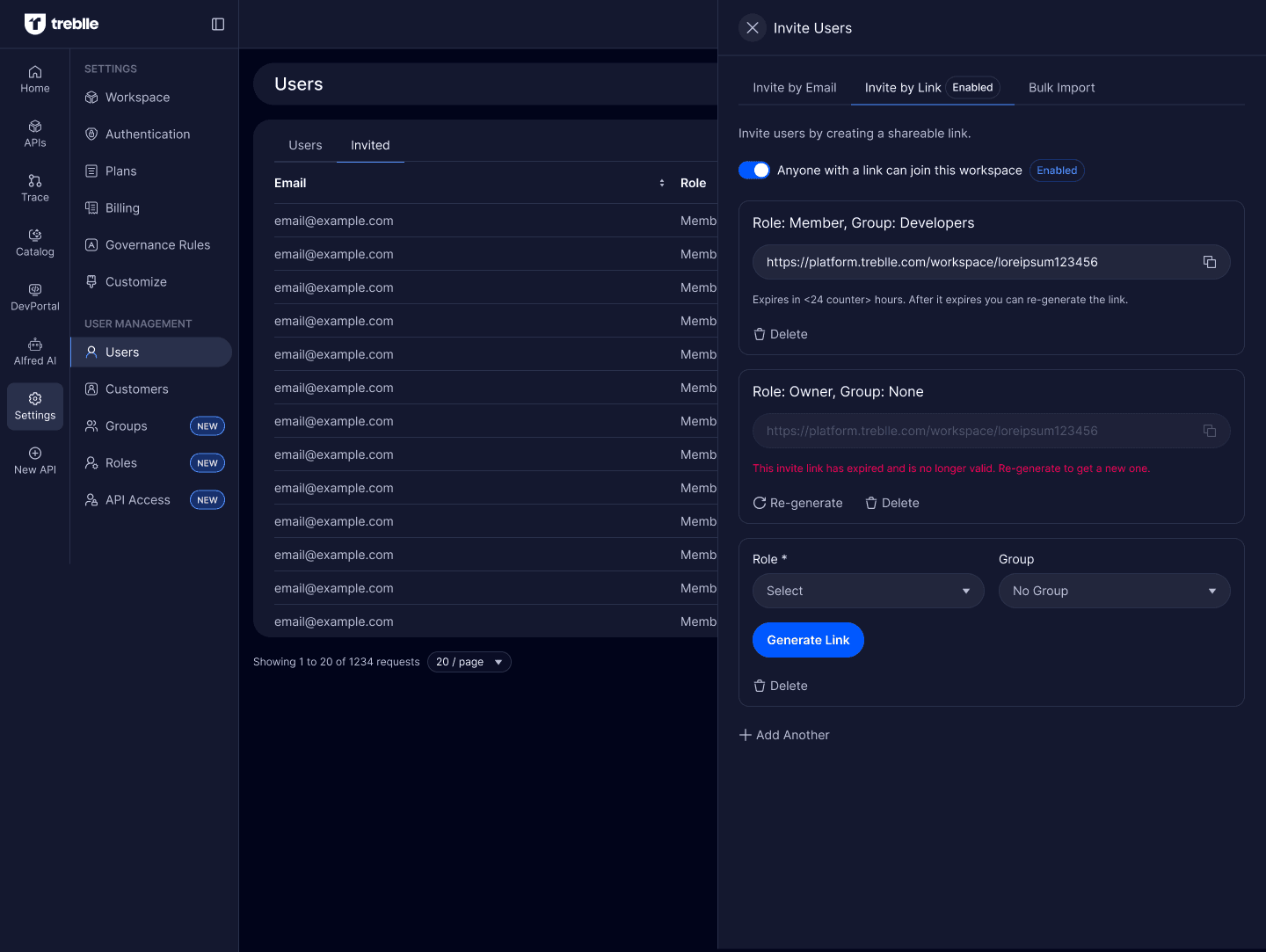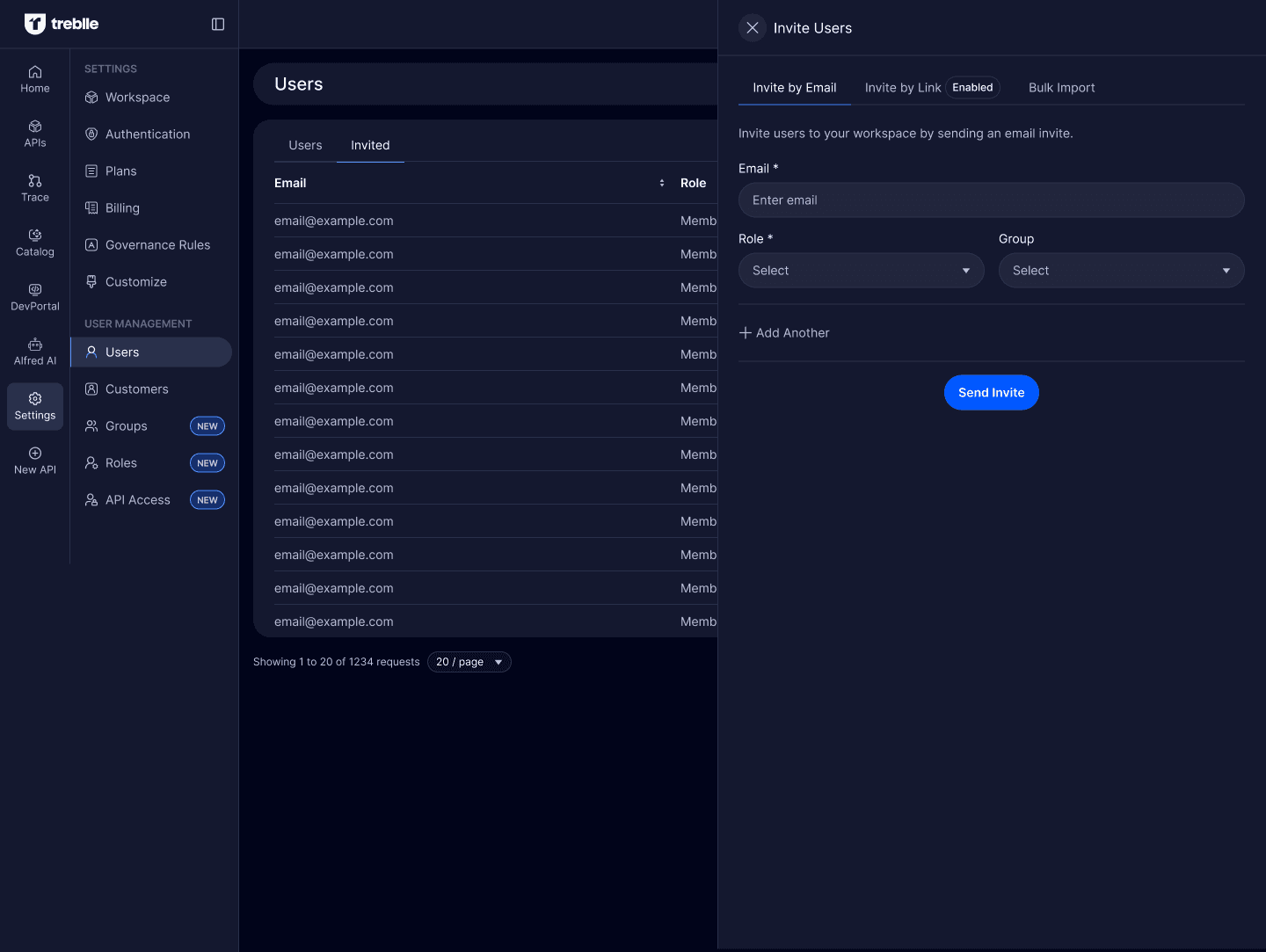- Invite new users
