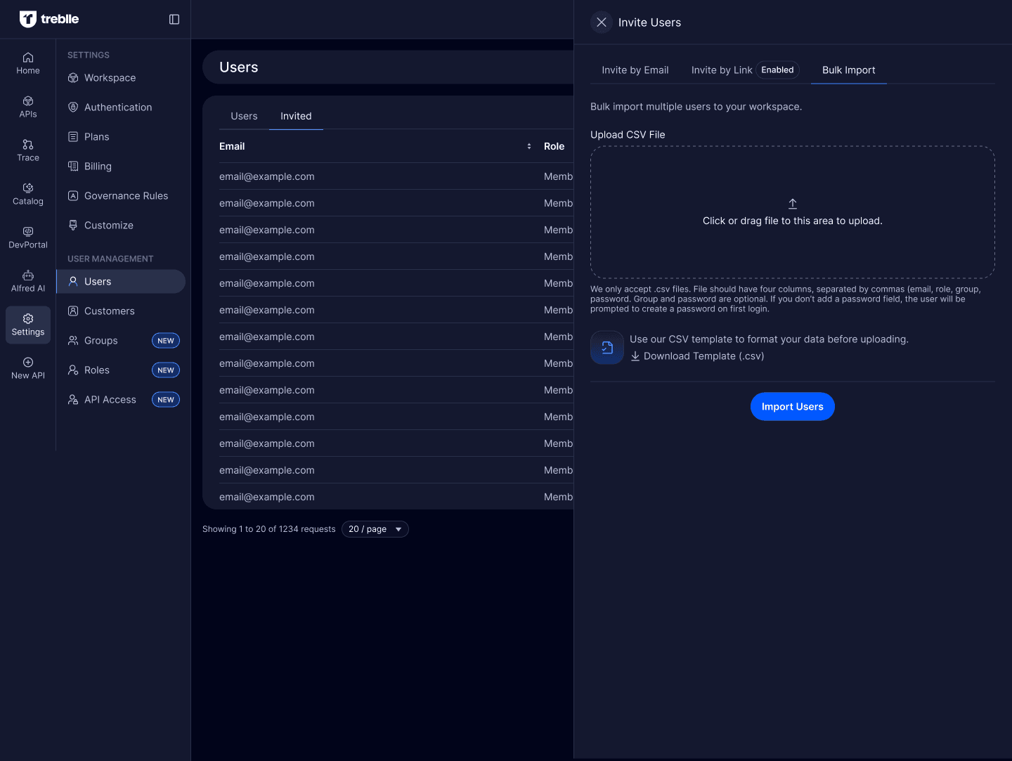 Customers can also be invited using CSV bulk import, following the same format as user imports.